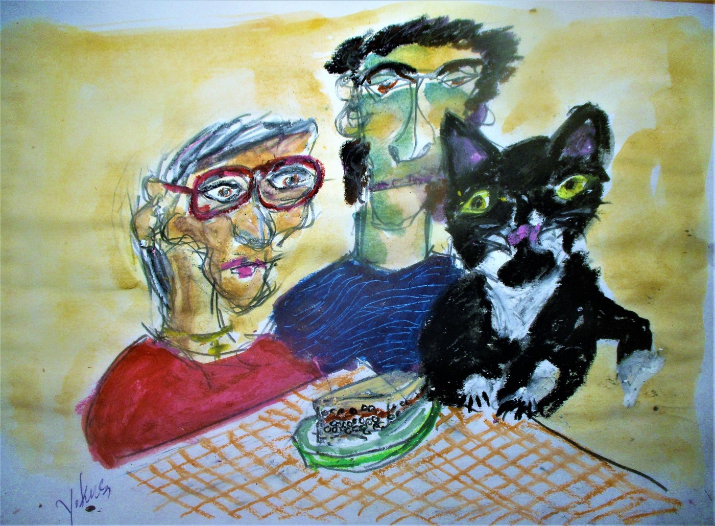 Υ.Γ.1. Η ζωγραφιά: Γύρω από το παστίτσιο. Μολύβι, ακρυλικά και παστέλ σε Α4. Από τα λαχταριστά χεράκια του Βασίλη, χωρίς τον οποίον οι ιστορίες μου θα ήταν σαν παστίτσιο χωρίς μπεσαμέλ, κι άντε μετά να λιώσουν τα βάσανα